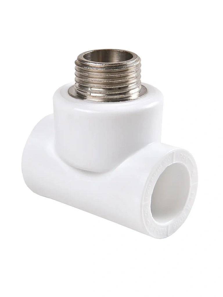 Комбинированный полипропиленовый фитинг, закладная деталь изготовлена из латуни марки ЛС-59-1. Обеспечивает боковой переход с основной магистрали на дюймовую резьбу в системах водоснабжения и отопления. Латунные части производятся методом горячего штампования, пластиковые - методом литья под давлением.