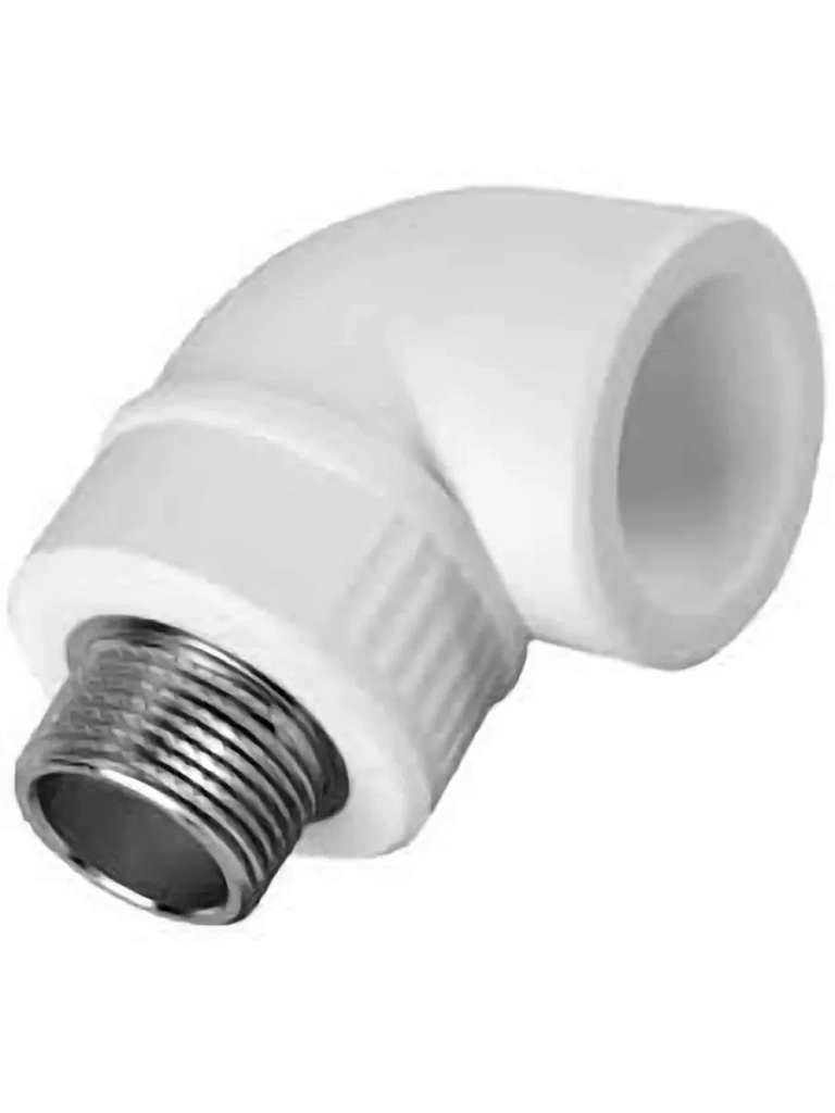 Угольник комбинированный с наружной резьбой предназначен для соединения полипропиленовой трубы и компонента системы с внутренней резьбой под углом 90 градусов друг к другу.