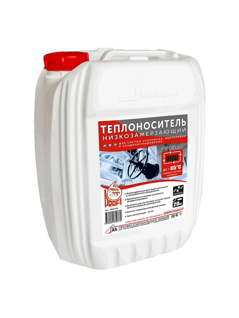 PROFI-65 — теплоноситель с температурой начала кристаллизации -65 °С на основе этиленгликоля. Его можно использовать как в исходном, так и в разбавленом виде.