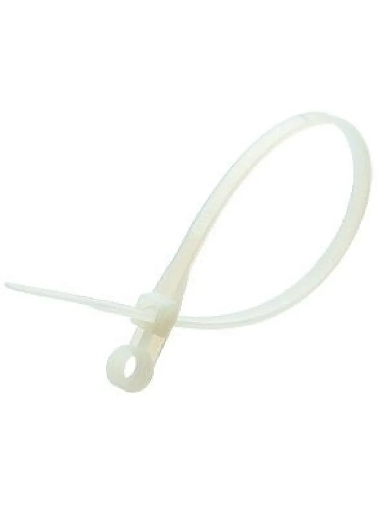 Конец стяжки имеет конструктивное отверстие для крепежа хомута к рабочей поверхности при помощи саморезов