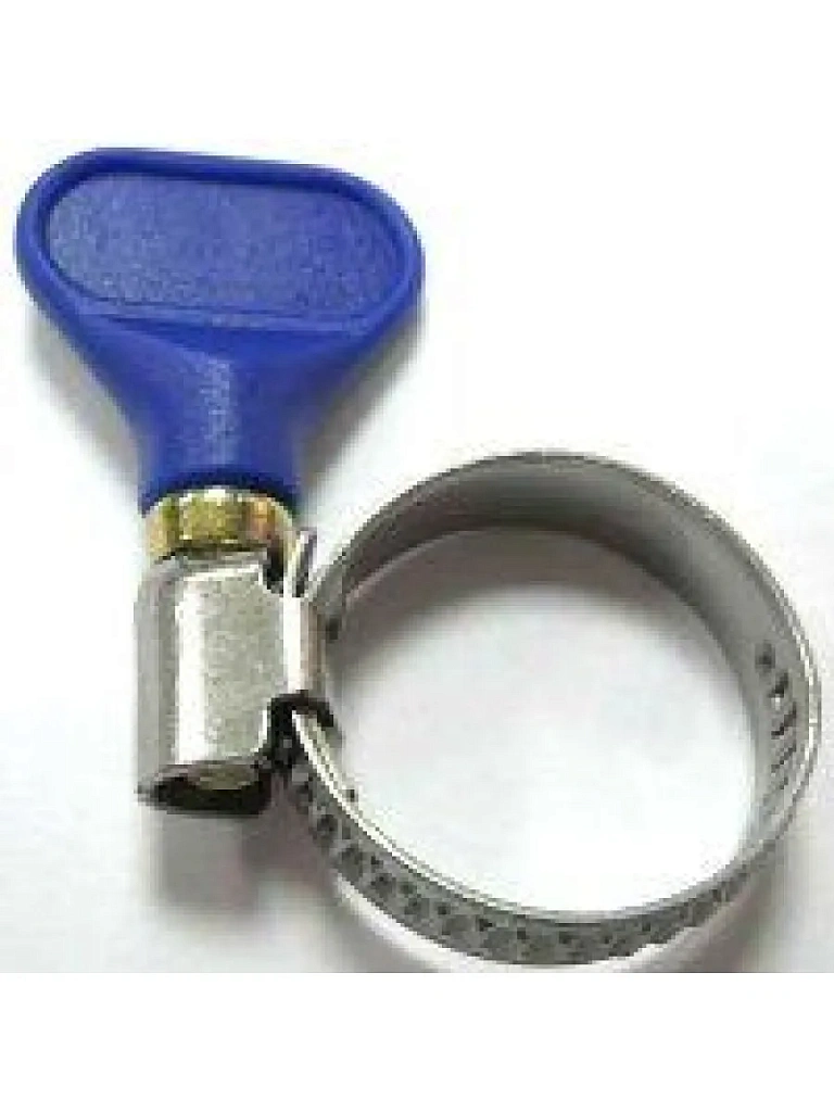 Хомут червячный с ключом (или "хомут червячный с бабочкой") изготовлен из высококачественной нержавеющей стали и предназначен для облегчения монтажа без использования подсобного инструмента, что дает премущество в возможности ручного затягивания или ослабления хомута для шланга. Червячный механизм способствует плавному скольжению по ленте хомута и равномерному обжатию шланга. Ключ изготовлен из прочного и не бьющегося пластика разной цветовой гаммы. Многократность и простота использования при монтаже делают этот хомут отличным помощником в работе. Так же может изготавливаться из оцинкованной стали. Быстрый монтаж и быстрый демонтаж хомута с ключом делают его незаменимым помощником в подсобном хозяйстве, в автосервисе.
