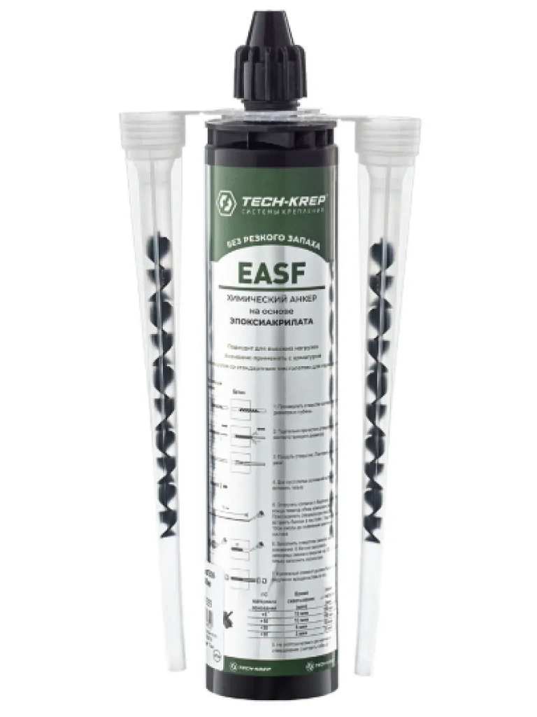 Особенности: подходит для высоких нагрузок. EASF – это двухкомпонентный химический состав на основе синтетической эпокси-акрилатной смолы, не содержит стирол и не имеет запаха.