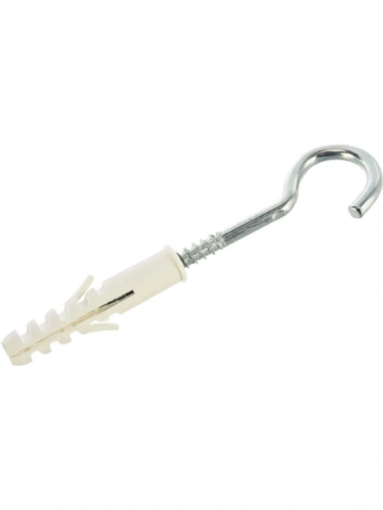 Монтаж требует предварительного сверления отверстия в основании. Монтажное гнездо должно быть чистым и сухим. Дюбель загоняется в отверстие молотком до упора бортиком в края. Далее вручную наворачивается крюк до полной фиксации крепежа.