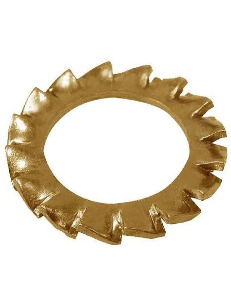 Стопорная шайба с зубьями DIN 6798 A используется для стопорения резьбовых соединений в различных областях машиностроения. Буква А в маркировке шайбы обозначает, что зубцы находятся на внешней стороне диска. Благодаря зубцам стопорная шайба максимально тесно прилегает к поверхности материала, что исключает проворот соединения и его ослабление под действием вибрации. Благодаря этому свойству шайба с внешними зубьями DIN 6798 A используется при производстве механизмов. При необходимости сохранить целостность покрытия под шайбу с зубьями может подкладываться обычная плоская шайба. По своим характеристикам шайба с зубьями соответствует российскому стандарту ГОСТ 10463.