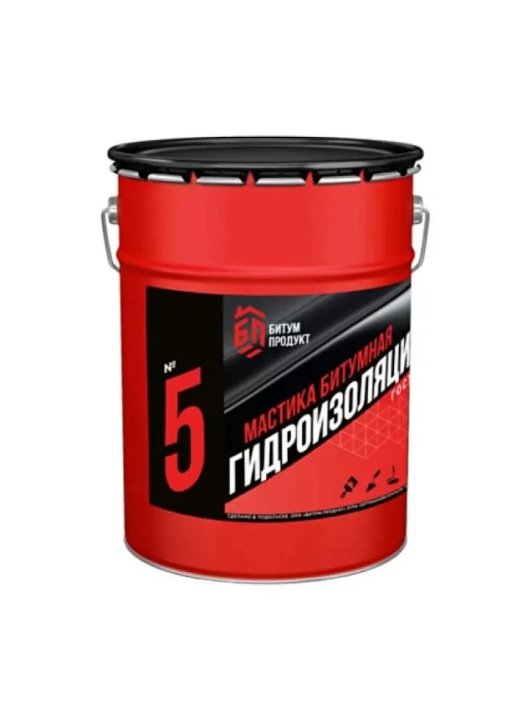 Битумная гидроизоляционная мастика БИТУМ ПРОДУКТ 20 кг предназначена для наружной обработки бетонных, железобетонных, деревянных и других строительных конструкций. Состав подходит для поверхностей, контактирующих с грунтом и влагой (фундамент, сваи, полы и стены подвалов и бойлерных). Продукт обеспечивает эффективную защиту от возникновения коррозии. Расход мастики на один слой не более 2.5 кг/м2