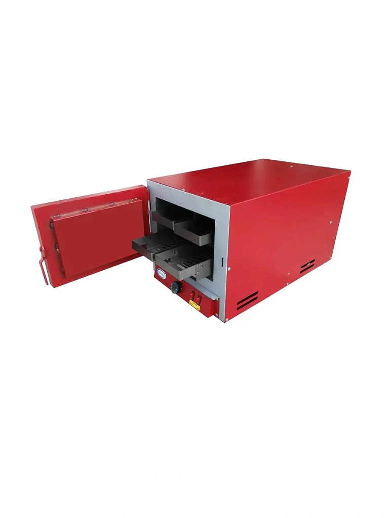 ТЭН оптимально размещен внутри камеры, что способствует эффективной термоизоляции, а встроенная автоматика обеспечивает быстрый нагрев и стабильное поддержание температуры сушки электродов.
