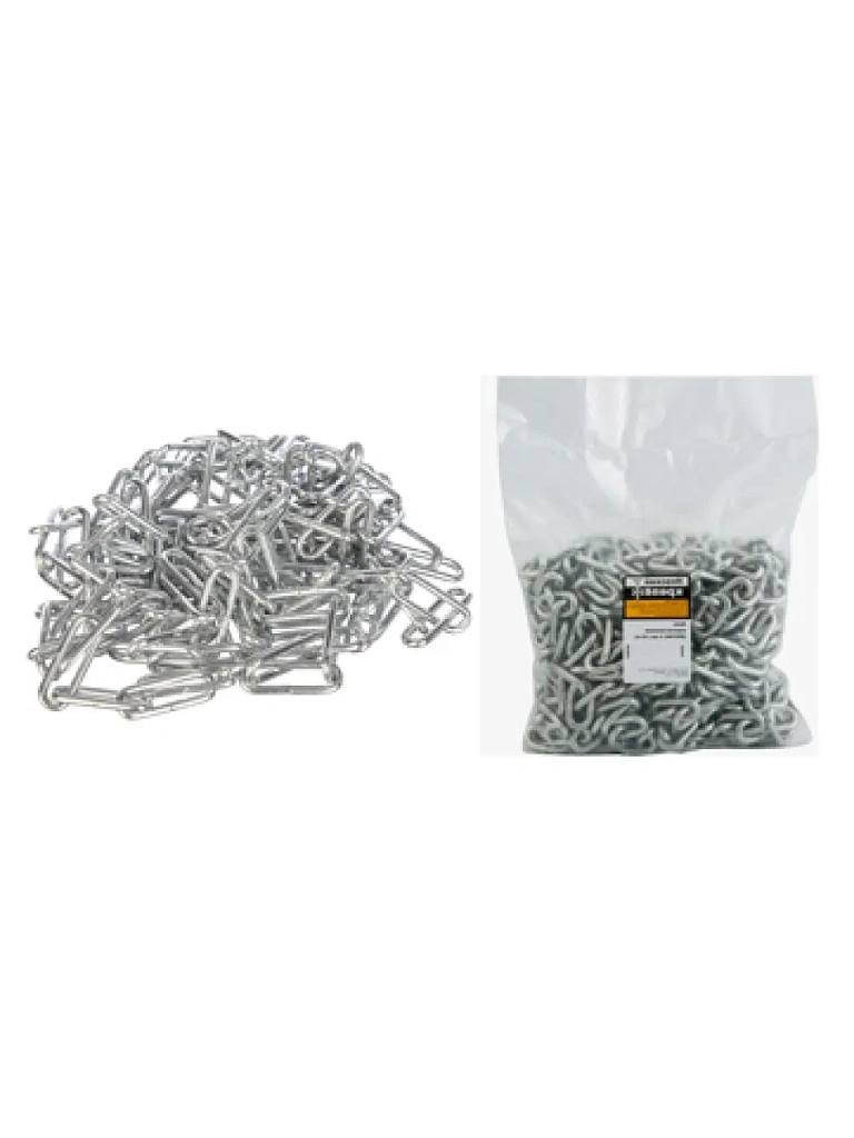 Цепь – такелажный метиз из углеродистой оцинкованной стали, состоящий из ряда сварных звеньев, последовательно соединенных между собой. Цепь сварная металлическая может использоваться при различных строительных, монтажных и такелажных работах, в качестве поддержки грузов, страховки конструкций или их элементов, для создания страховочных растяжек, плавно натягивающих элементов, подвеса статичных грузов. Такелажные цепи обладают хорошей прочностью и значительной долговечностью, но они имеют большую массу и очень малую эластичность. Недостатки такелажных цепей: большой вес по сравнению с тросами и неспособность пружинить при натяжениях. Кроме того, при сильных морозах цепи легко рвутся от резких ударов. Их не рекомендуется применять для подъема больших грузов, поскольку они выдерживают незначительную нагрузку разрыва. Также данный такелаж не выносит удара, не имеет повышенной прочности к разрыву в местах соединения при больших нагрузках. Цепь оцинкованная длиннозвенная обладает большой подвижностью.
