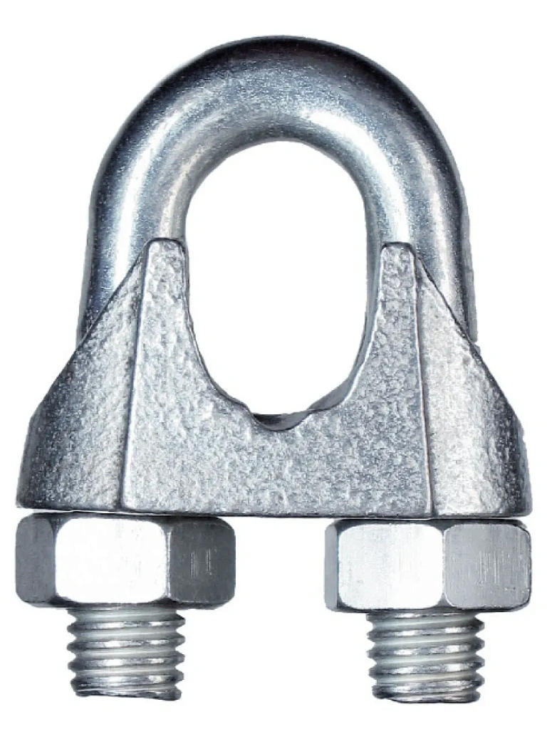 Зажимы для троса DIN 741 по сравнению с DIN 1142 имеет меньшую прочность и рекомендуется для соединения тросов между собой и изготовления петель на концах троса при производстве работ не связанных с подъемом и перемещением грузов. Зажимы изготовлены из углеродистой оцинкованной стали. Размер зажимов троса определяется по диаметру применяемого троса. Область применения: не менее 3-х зажимов на соединение.